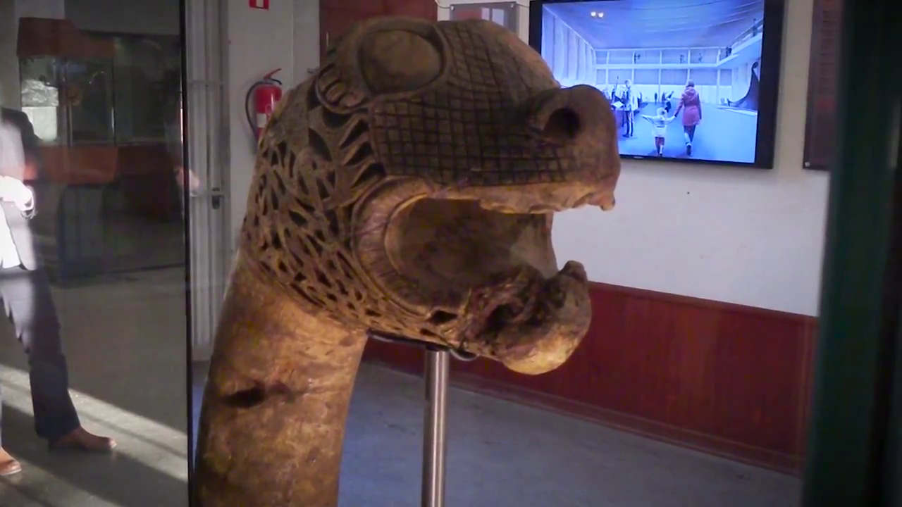 This is one of four heads found in the excavations of Oseberg.